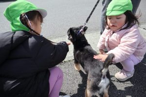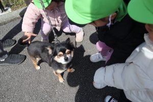 お散歩中のわんちゃんに興味津々♪