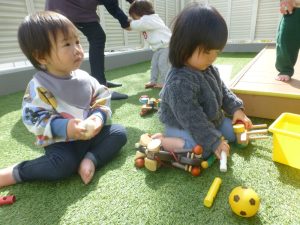食育の後は、テラスや芝生の広場で遊びました。