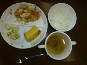 白米・豚肉のすき焼き風・ふかし芋・みそ汁・バナナ