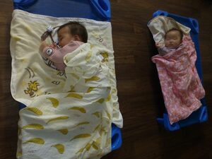 エンジェルクラスの子どもたち。寝る時には、抱っこでゆらゆらしてもらうと、うとうと・・・。かわいい寝顔を見せてくれます♡