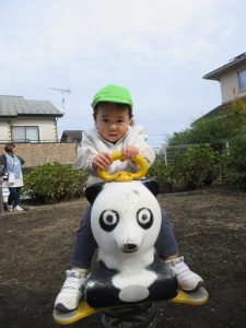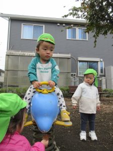 落ち葉を触ったり、スプリング遊具に乗って遊んだり重いリュックを持とうとしたりと思い思いに楽しんでいましたよ🎃