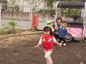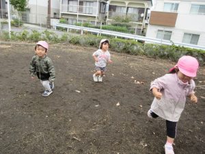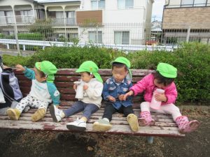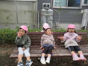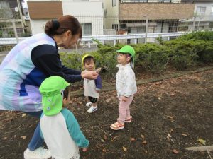 雨は上がったものの、今朝も冷えましたね…。日中は各クラス、横町公園に遊びに出かけました。